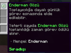 Enderman Gözü, ilgili günlük görev etkin iken Enderman'dan düşebilen bir özel görev eşyasıdır.