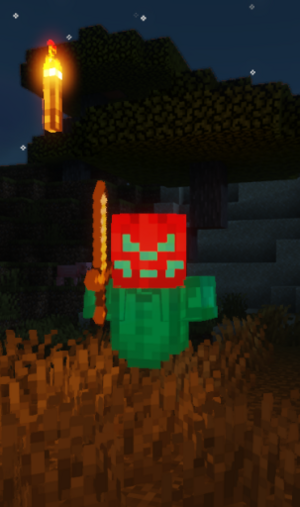 Ethereal'in üzerinde Turkuaz renkli bir deri zırh, kafasında bir Jack-o'-lantern ve elinde bir Altın Kılıç bulunur.