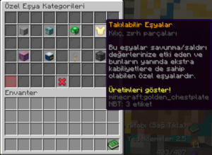 Oyunda sizlerin oyun deneyimini daha iyi hale getirmek için eklenmiş kılıç, zırh ve aletleri kapsar.