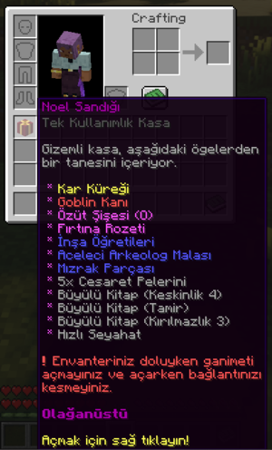 Açıldığında içinden özel eşyalar çıkan gizemli bir oyun içi kasadır.