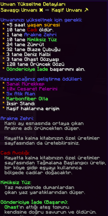 [[Dosya:Kaşifgüncel.png|thumb|350px|sağ|Kaşif Ünvanı Gereksinimleri]]