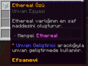 Ethereal Özü, Ethereal'den düşük ihtimalle elde edilebilen bir unvan geliştirme eşyasıdır.